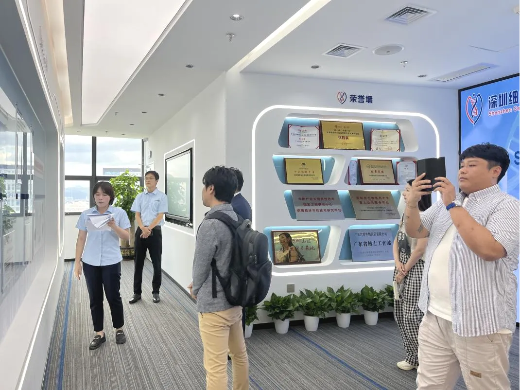 ; Zhang Fan from the Sales Department of Smart IC Co., Ltd.; Wang Jiannan, General Manager of Shenzhen Xinyang Investment Management Co., Ltd., Chen Lili, Assistant to the General Manager of the aforementioned company; Yang Jun, Industry General Manager of Shenzhen Yawei Information Technology Group Co., Ltd.; Cheng Bing, Operations Manager of China-Canada Enterprise Innovation Centre; and Chen Qi, General Manager of henzhen Idea Touch Information Consulting Co., Ltd. visited Shenzhen Cell Valley Biomedical Co., Ltd. for inspection and exchange. Shenzhen Cell Valley's Chairman Professor Shi Yuanyuan, Chief Scientist Professor Wang Jianxun, Deputy General Manager Tang Xiaomeng, General Office Director Luan Zhishi, Assistant to the Chairman Wei Zheng, Sales Department Head Yang Borui, Sales Department Supervisor Yan Chengkun, and Marketing Department Supervisor Gulnara Halim warmly received them. Both parties held discussions on planned cooperation directions between China and Japan.