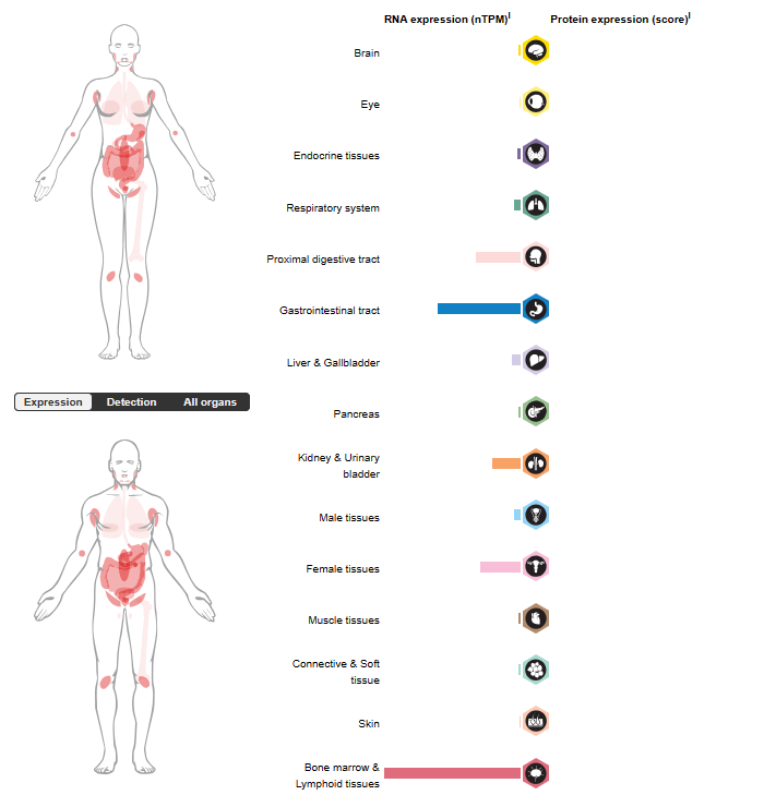 BCMA在恶性浆细胞中高表达,在正常组织细胞(除浆细胞和部分成熟B细胞)和 CD34+干/祖细胞上不表达,这使得其成为 MM 的靶向位点[1]。如图2所示,BCMA在幼稚B细胞、造血干细胞中检测不到,在大多数正常非血液组织中也检测不到,除了睾丸、气管和一部分胃肠道等,这些器官由于含有PCs而可以检测到。